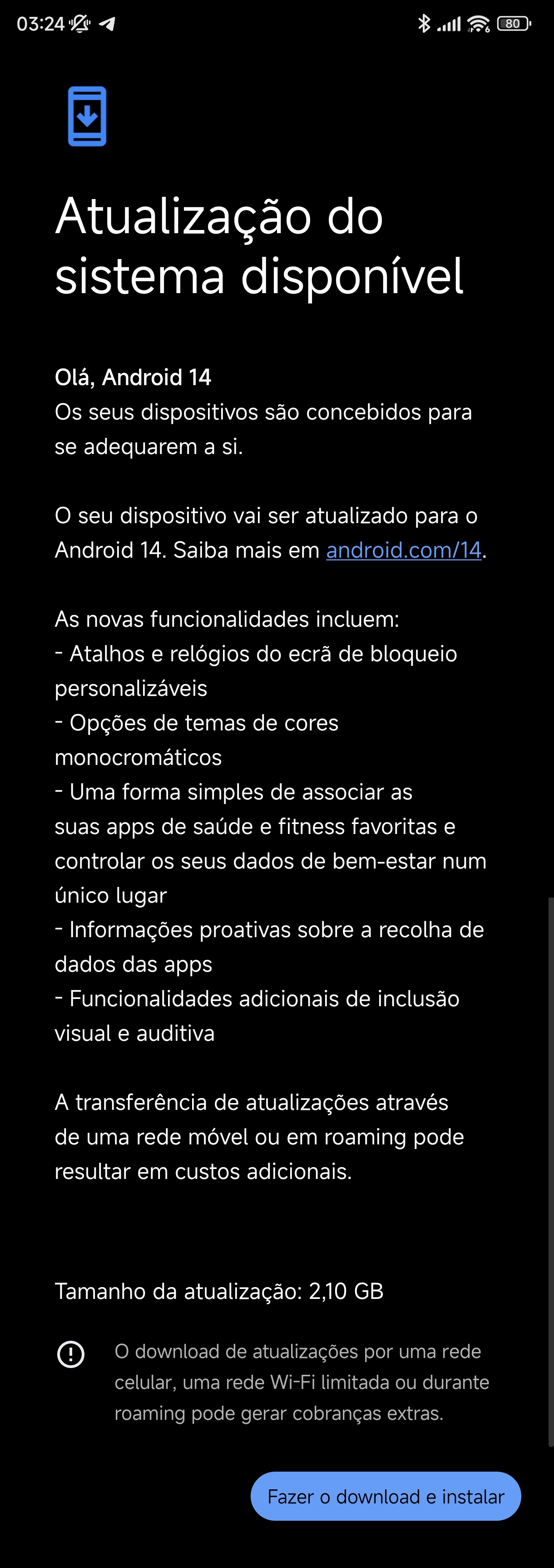 Uhhhh... I got a notification... To update to Android 14... From Google? With a 2.14GB download button. Seems legit, and it's from Google Play Services.