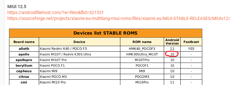 I've noticed mismatching Android version number between ROM Sheet and ROM Zip file name for Mi10T (apollo):
